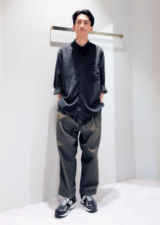 ワンプリーツを入れてワタリにゆとりを持たせたテーパードシルエット。