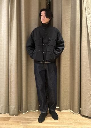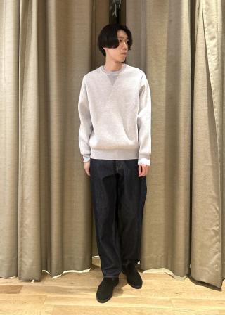 洗い込んでも生デニムのようなカリッとした風合いを持つデニム素材を作ろうとして、一から作り上げた素材です。コットンのムラ糸を極限まで強撚し、ピュアインディゴでロープ染めした糸を縦糸に使用して織り上げました。シャリ感のある風合いと自然な弾力のあるナチュラルなストレッチが特徴の、AURALEEの定番デニムです。