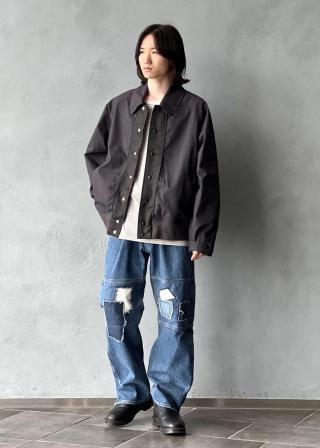 KYOU定番の80s Reproduced Denimをベースに3種類のデニム・ヘリンボーン生地を使用しリメイク風のパッチワーク加工を施した”LUMBERJACK"