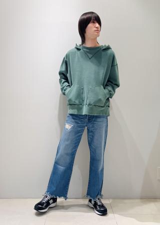 製品後に職人の手作業により、1 点 1 点 ダメージ、リペア、色落ち、アタリ、ヒゲを加えた。