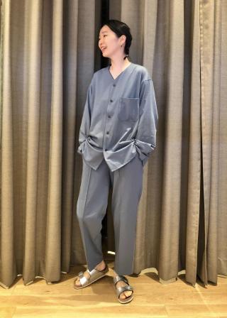 ワイドシルエットに見えますが、裾にかけて少しテーパードを効かせており、センターのピンタックがクリースの役割をしているので、ダラしなく見えずにスッキリとした印象です。