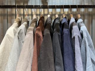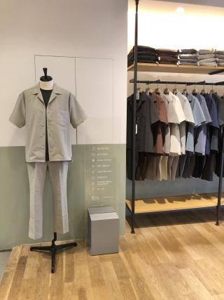 また、上下別々での着用もできる為、シャツにはデニムやチノパンのカジュアルなスタイリング、スラックスを合わせた上品なスタイリングもおすすめです。