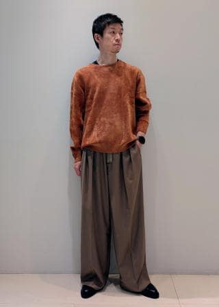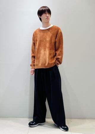 また、毛足のある編地がウォーム感と陰影が出て、スタイリングに深みをプラスしてくれます。