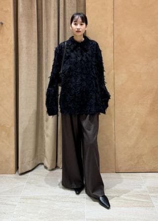 Mサイズでニット合わせでもゆとりのあるサイズ感です。