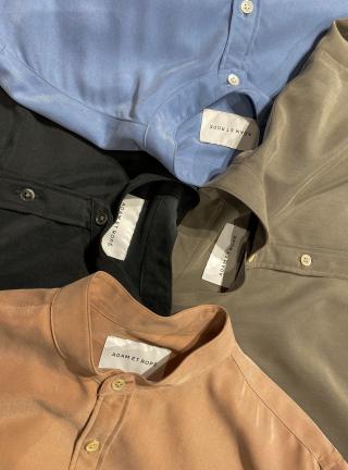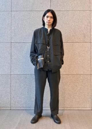 《21SS》リラックスドレープ レーヨンスエード とろみバンドカラーシャツ/UNISEX