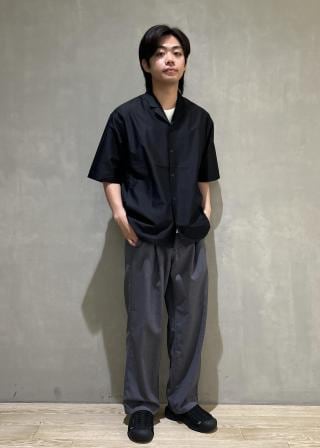 Lサイズ着用。汎用性の高いシンプルなBOXシルエット。涼しく、驚く軽さで他にはない快適なシャツに仕上がっています。