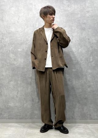 同素材のパンツ(GMS05170)とセットアップで着こなしていただくとリラックスした大人の遊び心あるスタイリングに。