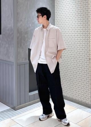 薄手になる時期に、鮮度出したコーディネートできるボックスシルエットのレギュラーカラー半袖シャツ。