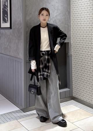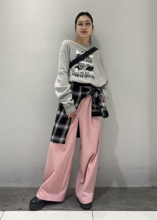 ・落ち着いたカラーリングでまとめたオンブレチェック柄