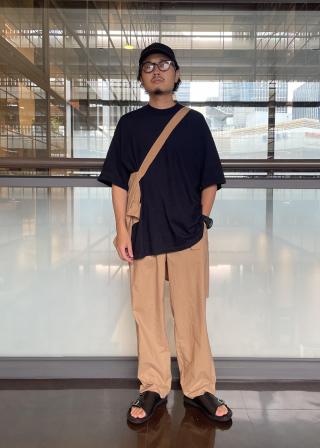 薄手で、柔らかな素材感で、オーバーサイズのバランスもあり、軽く快適な着心地です