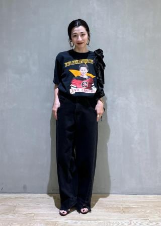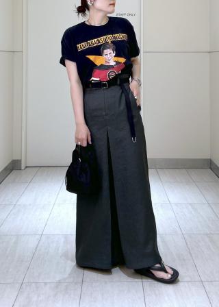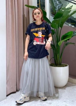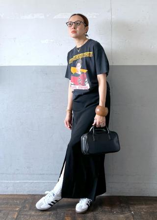 インパクトのあるプリントが目を引くバンドTEEです。Lサイズ着用ですが大きすぎる感じもないですし、柔らかくてクタッとした雰囲気も良いTシャツです。