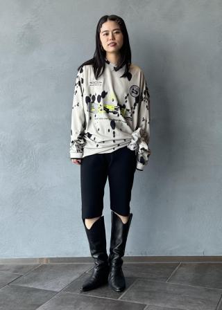 ロングスリーブ。オリジナルグラフィックプリントテキスタイルとナンバリングプリント。吸水速乾機能のポリエステル素材。