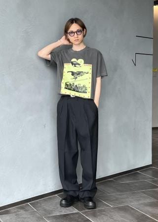 こういうエッジの効いたTシャツがあると、ジャケットやカーディガンの羽織りのインナーとしてすごく活躍しますよ!