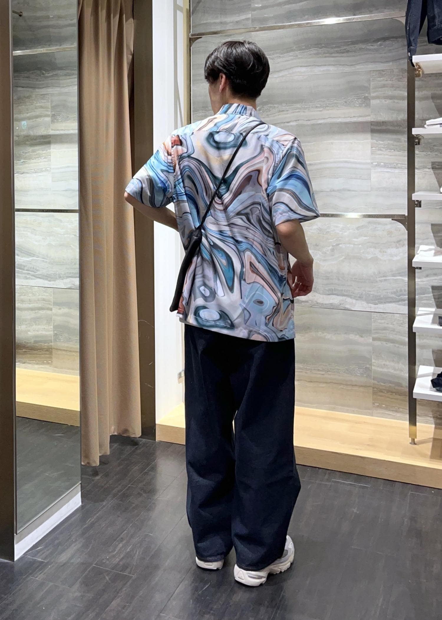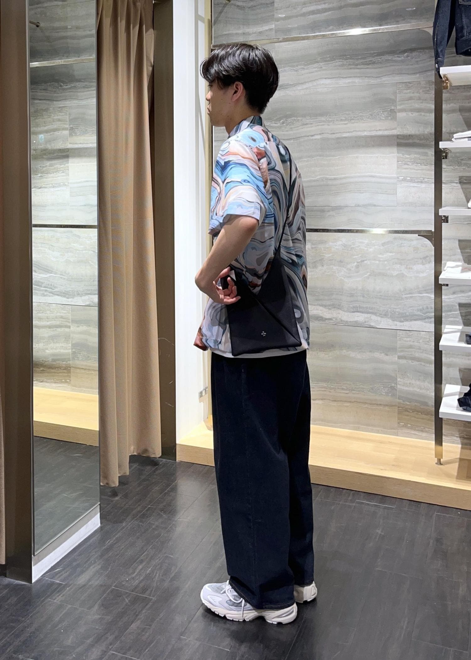 柄シャツコーデ(マーブル)