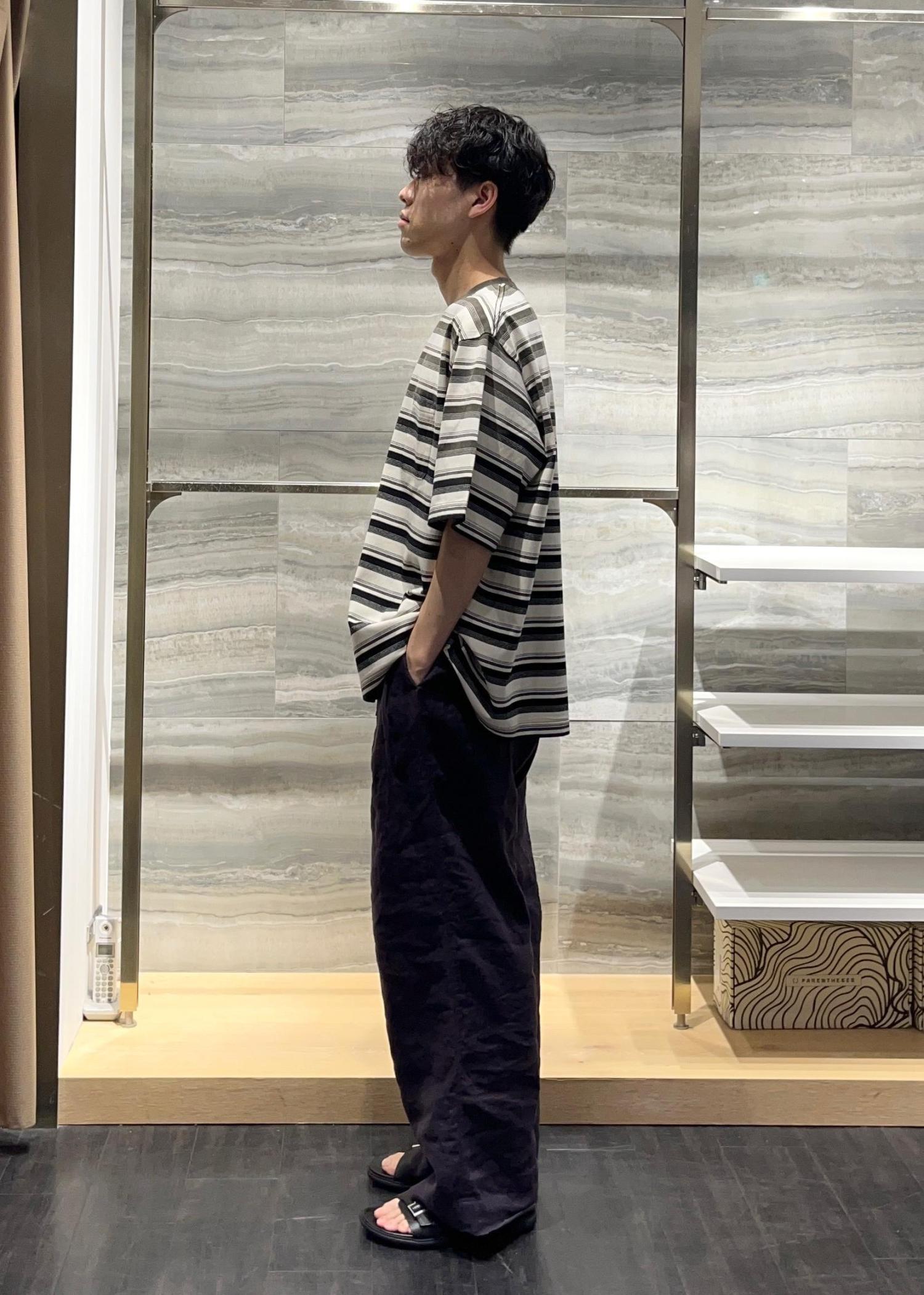 ゆったりとしたシルエットなので、ボトムスも程よくゆったりしたものを合わせ、ラフに着こなすのがオススメです。