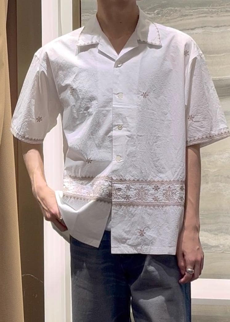 全面に刺繍を施し、シワ感のある素材で、他とは違う印象のシャツ。