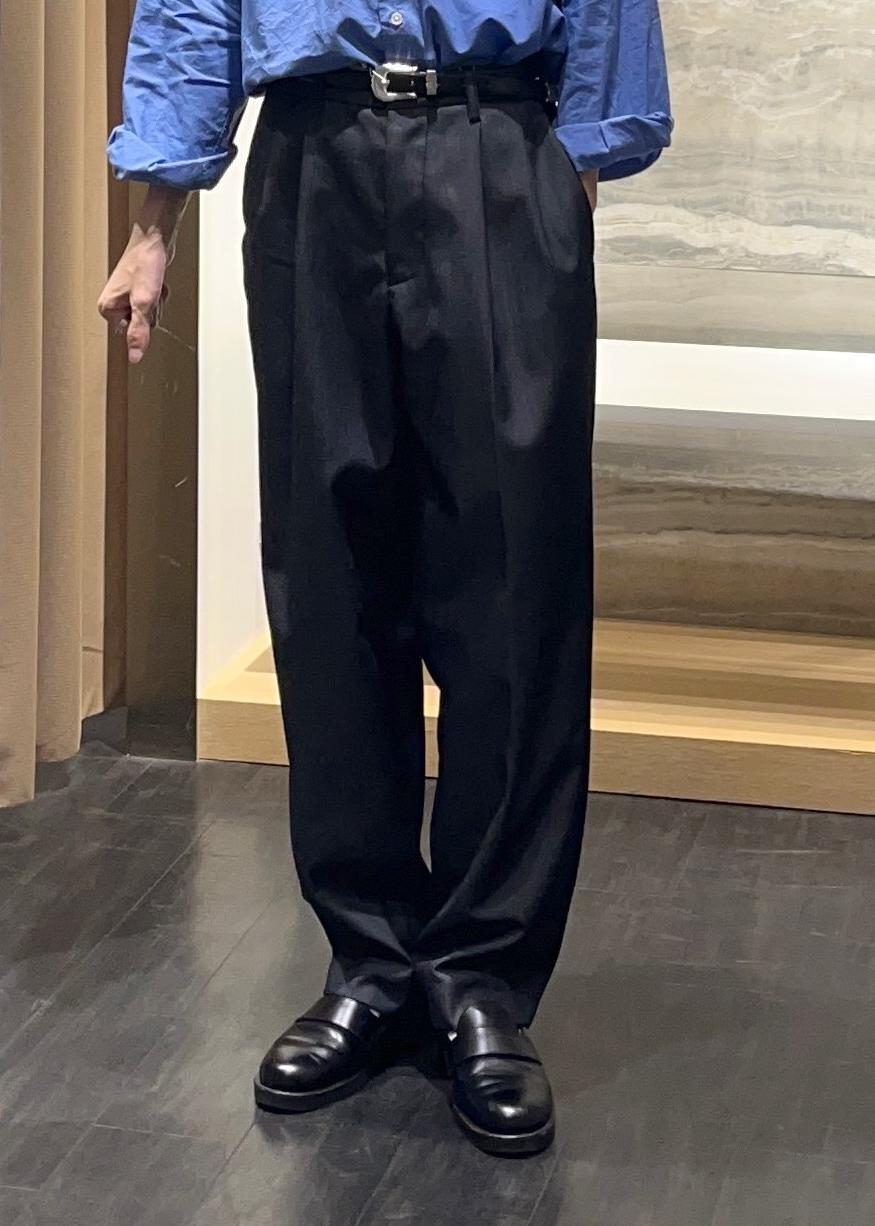 ADAM ET ROPÉ HOMME【NIKKE】ワイド イージー デニム スラックス / ADAM ET ROPE' JEANS -GRID-ブラック系 / S¥24,200レビュー171cm Sサイズ着用。