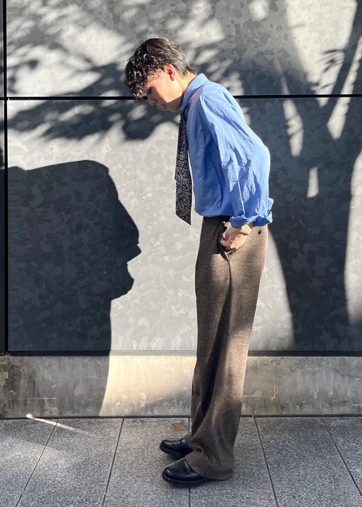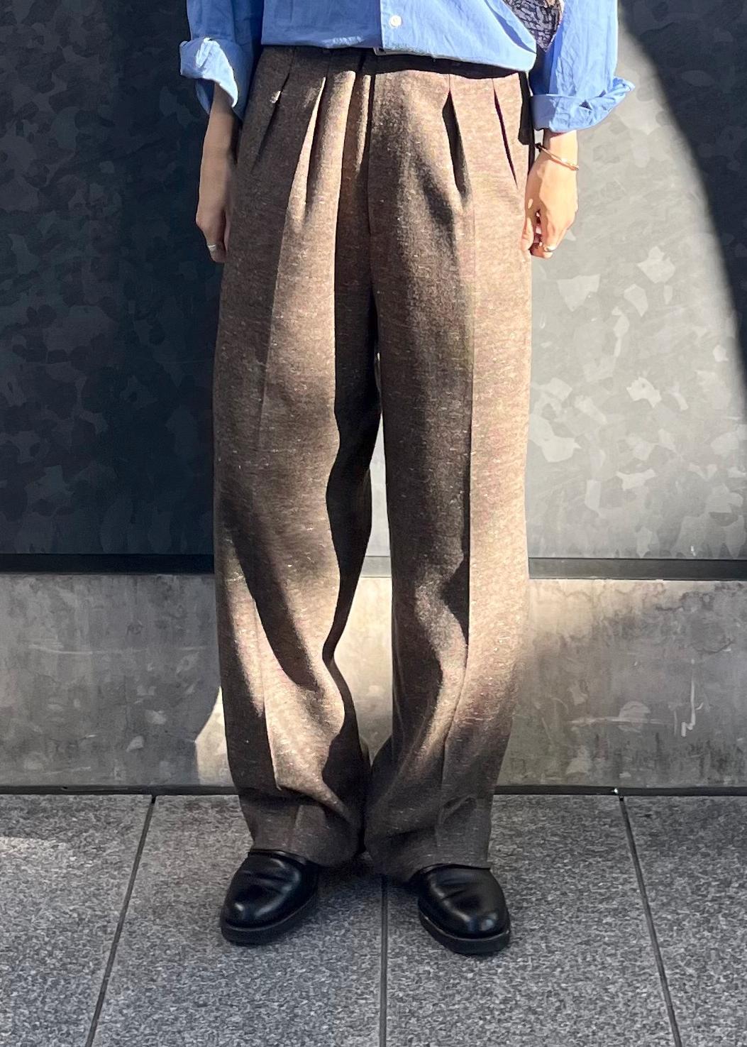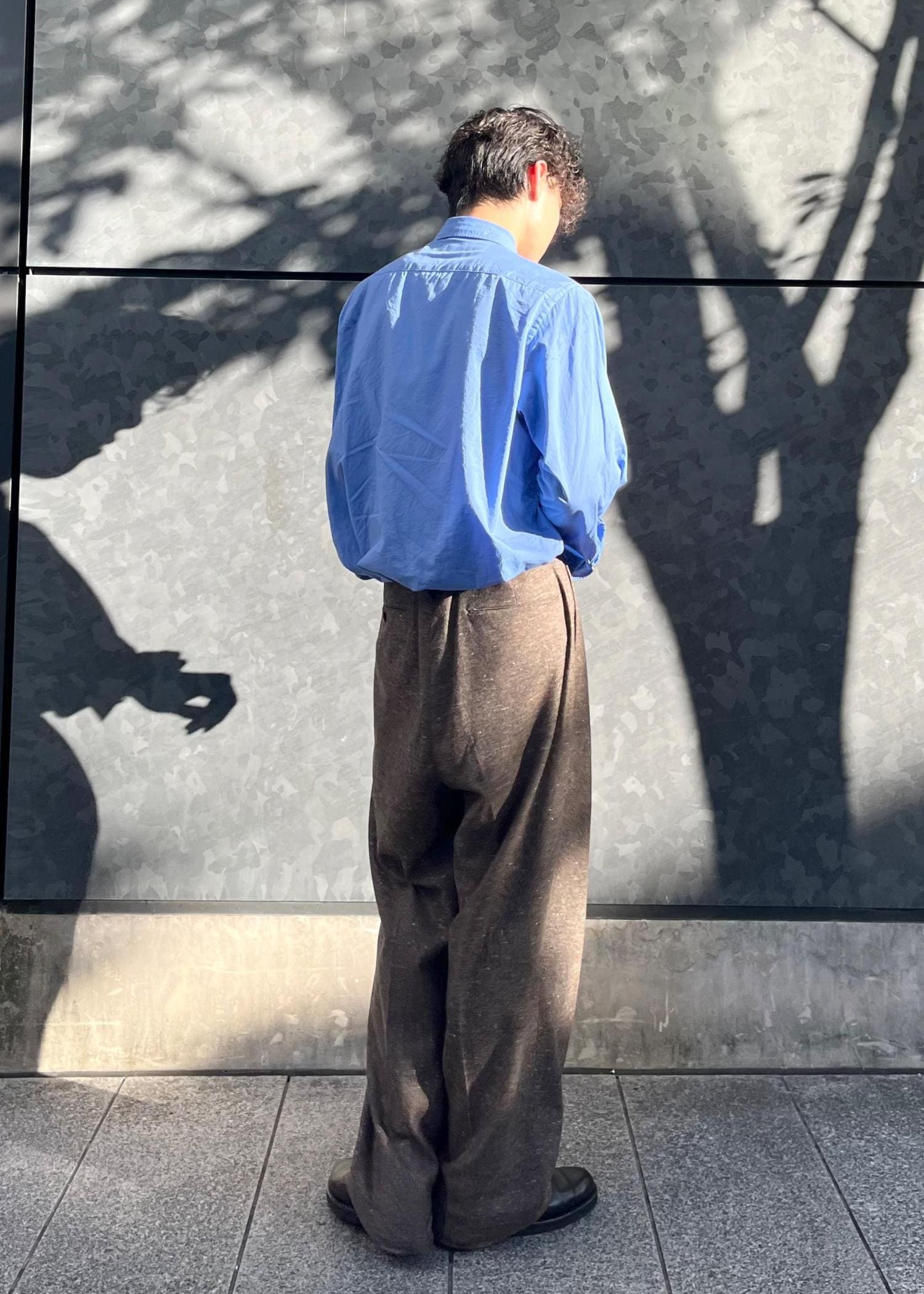 ADAM ET ROPÉ HOMMEハードクロス 2プリーツ スラックスダークブラウン系 / M¥35,200レビュー171cm Mサイズ着用