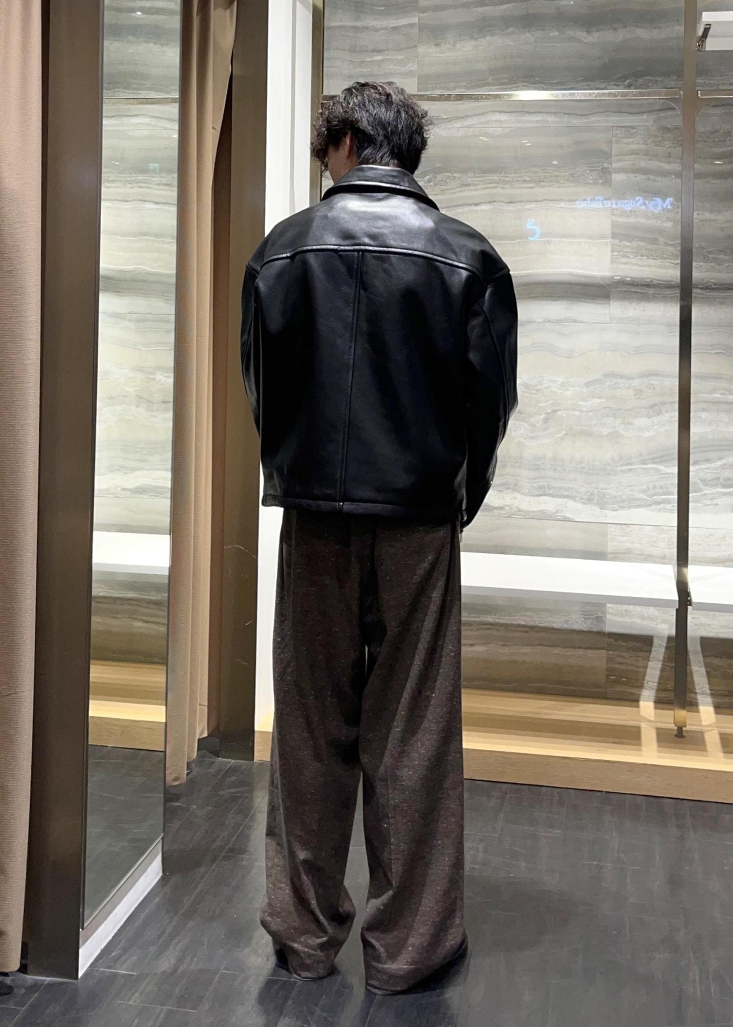 こちらのジップアップブルゾンは上質なラムレザーを使用し、柔軟性と硬質感が共存した唯一無二の存在。