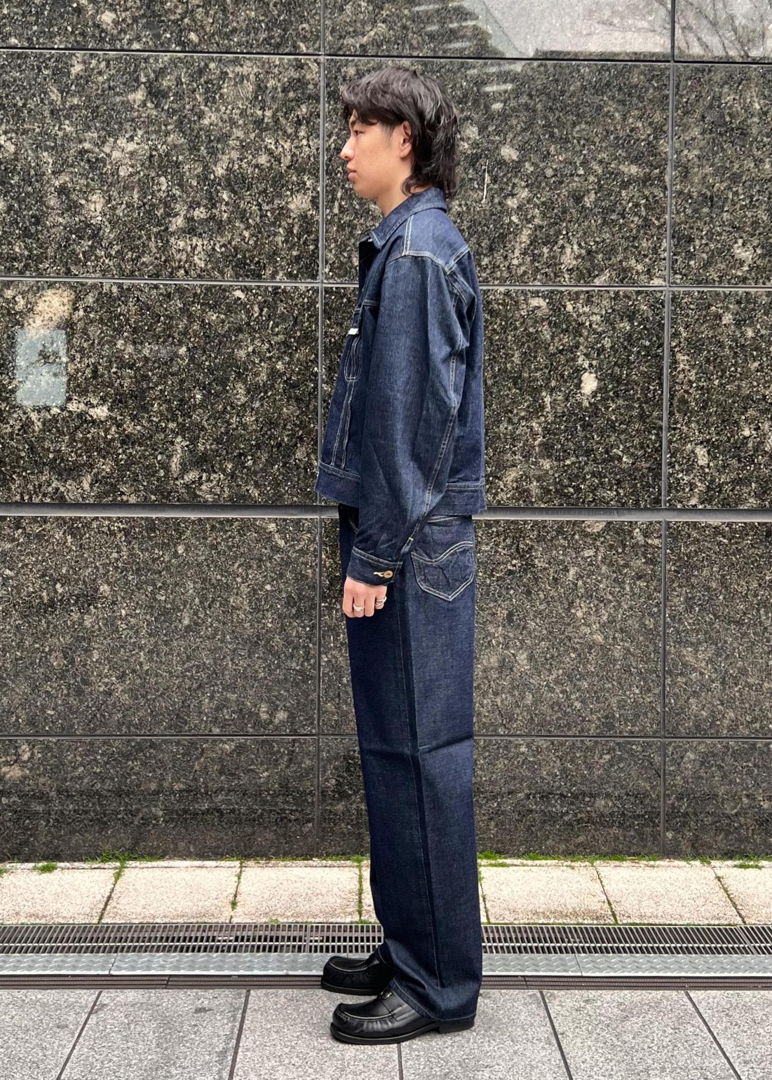 デニムの硬い印象を払拭してくれるかつ、Leeの名作をMARKAWAREのデザイナーである石川氏の持つ清潔感のあるサイズバランスで楽しんでいただけます!