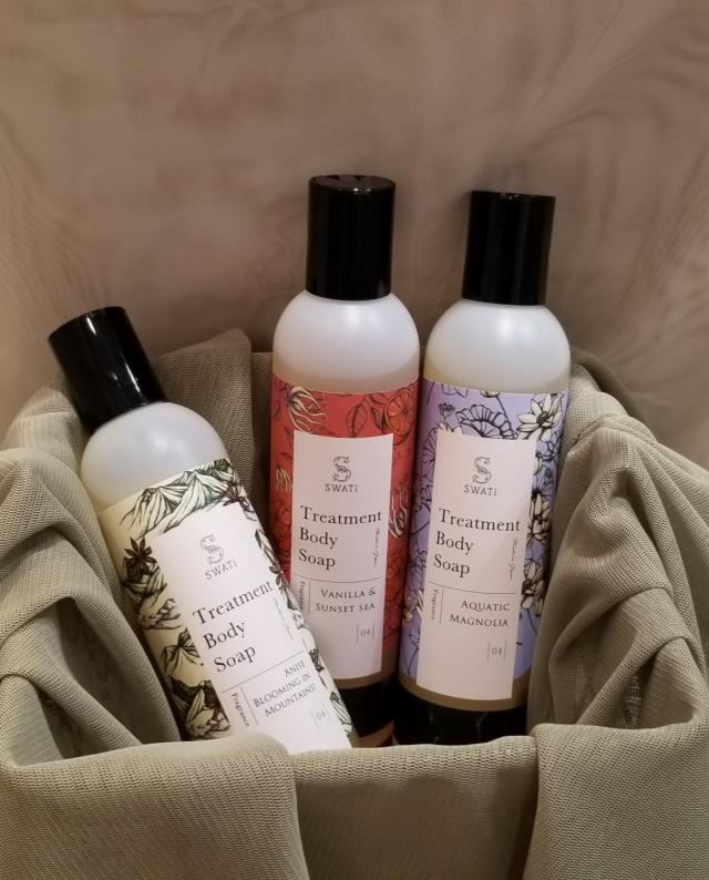 お肌にやさしい植物由来。洗い上がりにはボディに香りが残るので続けて香りを楽しめる。