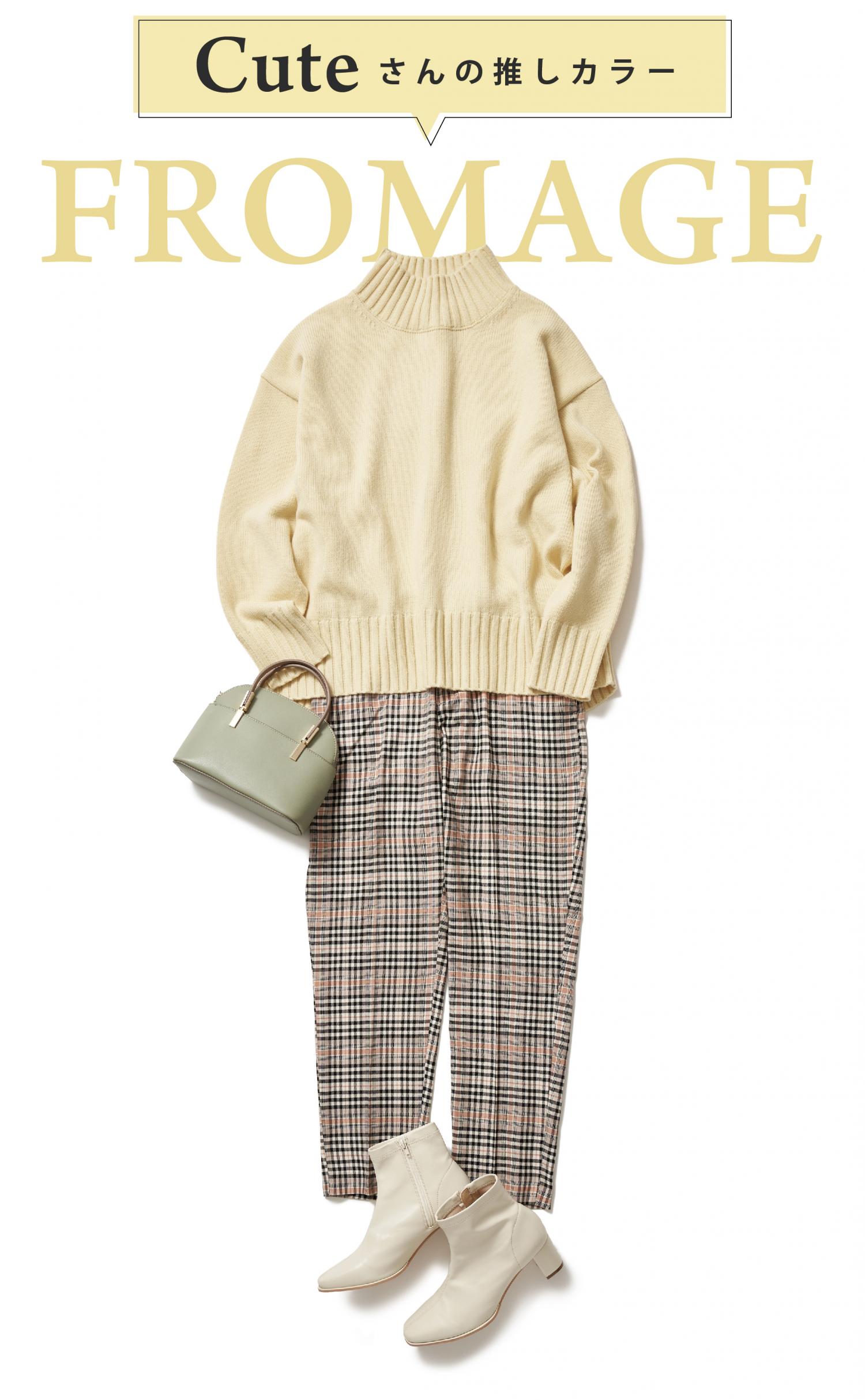 クリーム系のトップスもキュートさんにぴったりのカラー!ベージュベースのチェック柄パンツも優しげな雰囲気にマッチして◎