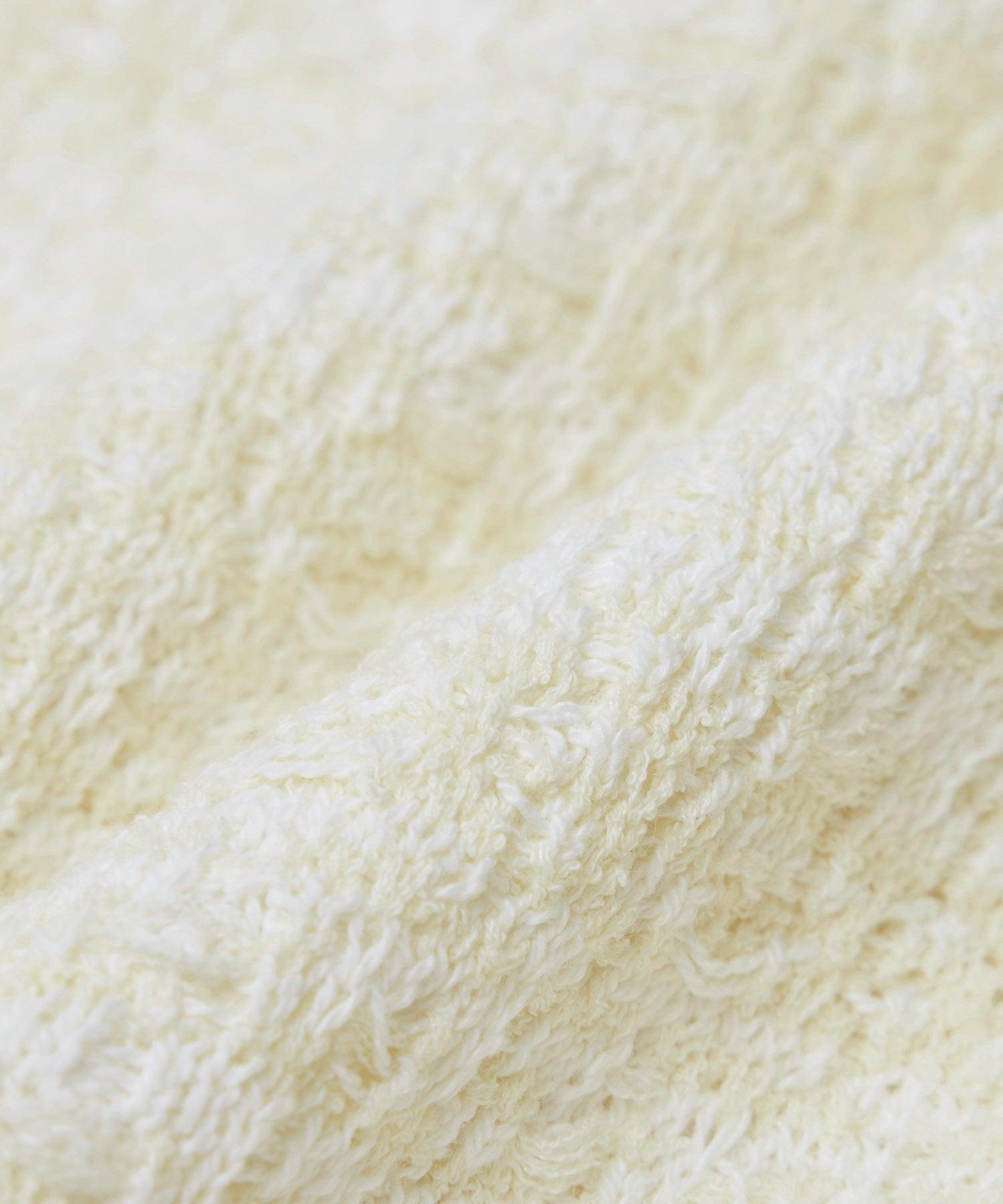 自分にも地球にもやさしいオーガニックコットン100%の「クリーミーコットン」素材。 とろけるような肌触りは、一度味わったらやみつきに。 繊細な毛の細さでベロアの様な上品な表面感に加え、なめらかでソフトな肌触り。 天然素材なので肌に優しく、静電気を気にすることなく着られるのもうれしいポイント。 とにかく心地良さがやみつきになります。