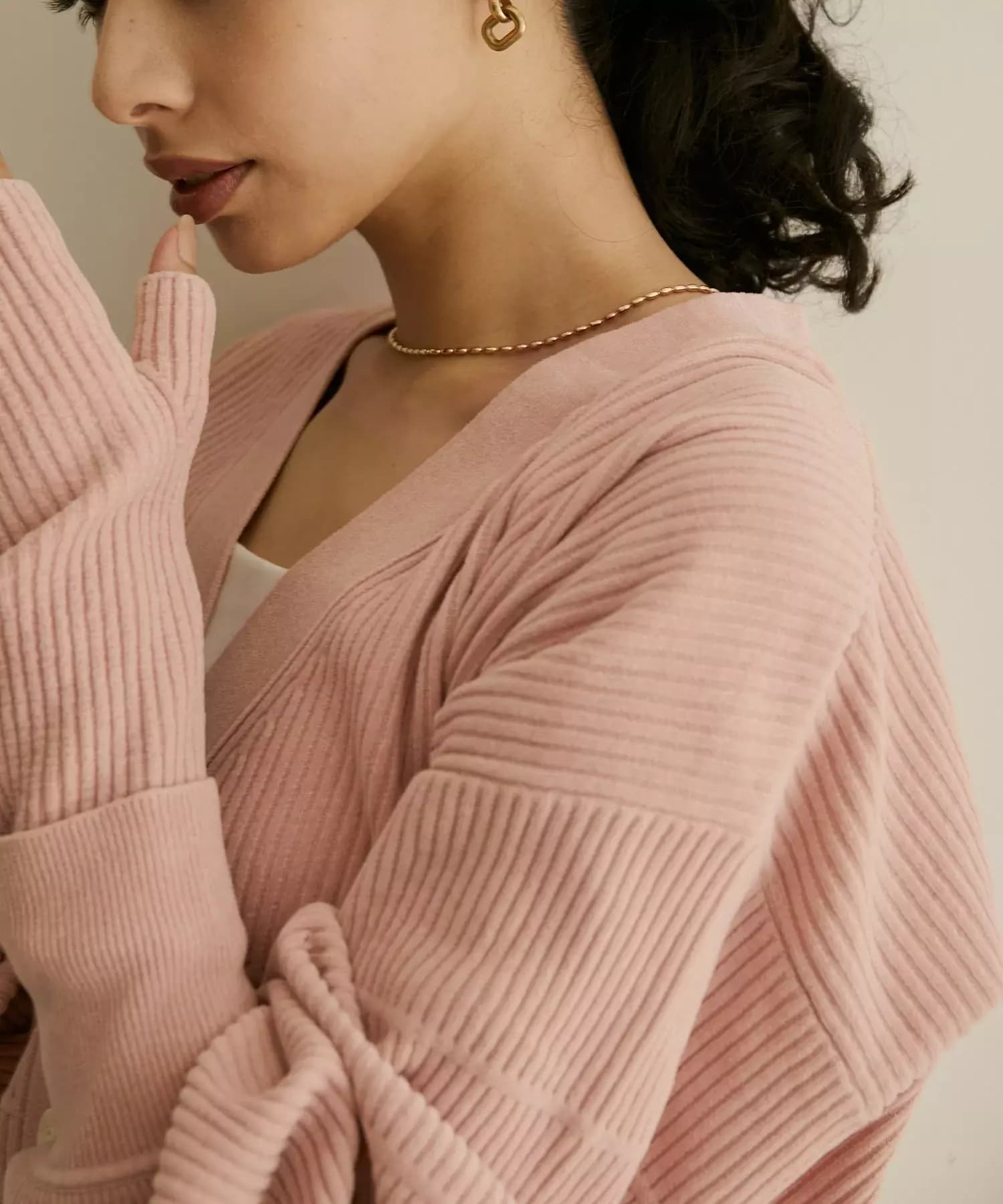 ストレッチ糸をひきそろえて編むことで、シルエットを保ち、程よいハリ感が出る編み方です。
