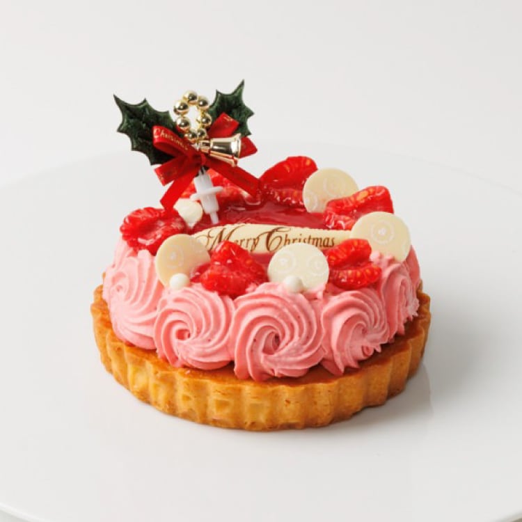 エシレバターを使用してしっとり焼き上げたタルトに、ユズが香るフロマージュムース。センターには甘酸っぱいベリーのジュレ。ピンク色クリームで飾ったルージュカラーで、大人も楽しめるリースケーキをどうぞお楽しみください。