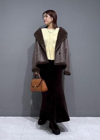 さりげない柄切替が シンプルコーデの主役に。存在感のあるスカートと合わせて 甘辛MIXスタイルに◎