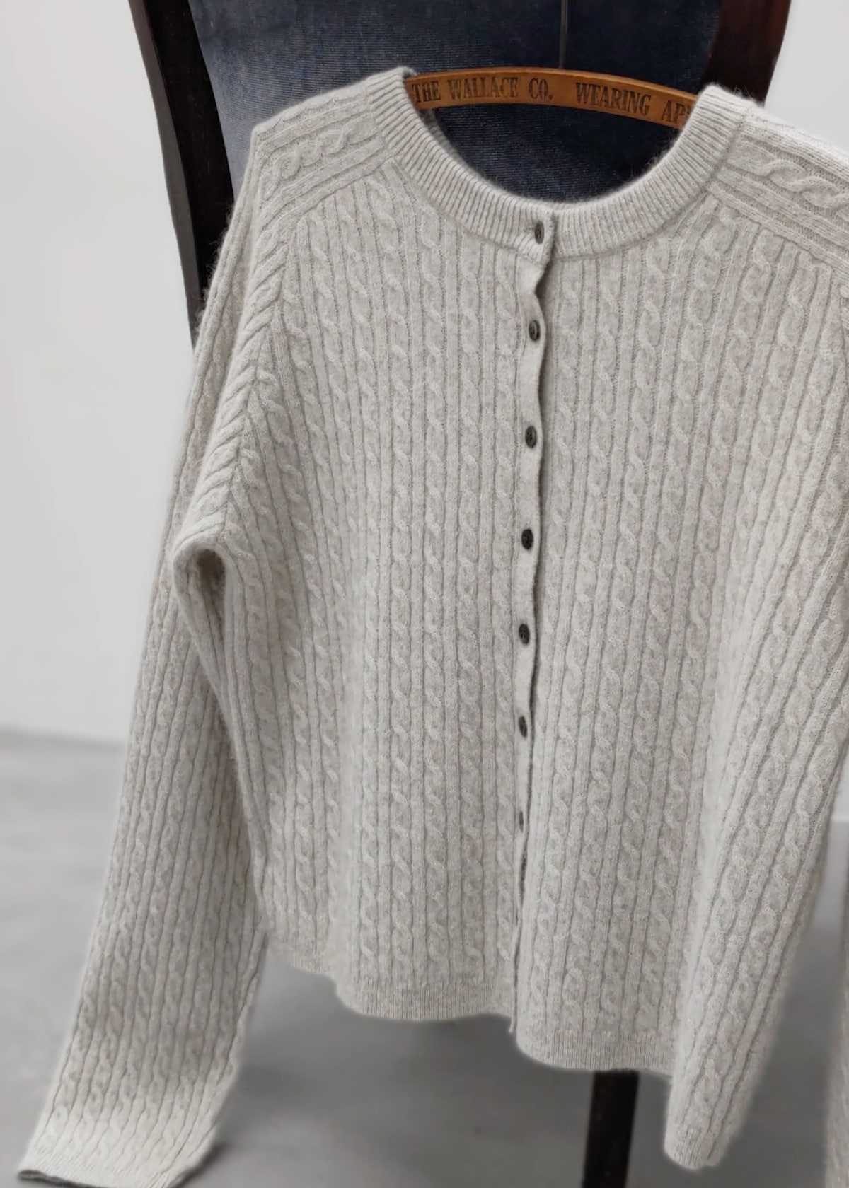 お世話になっている母に製造担当しているFOX混ラメの2WAYで楽しめるケーブルニットを贈りたいです。