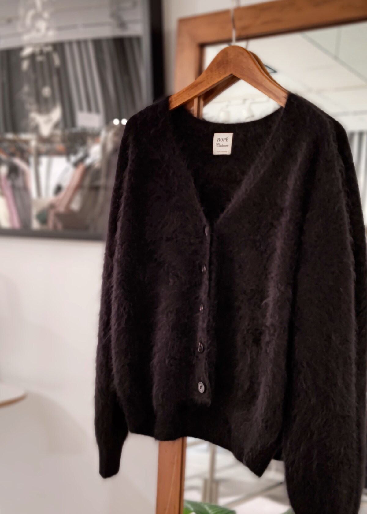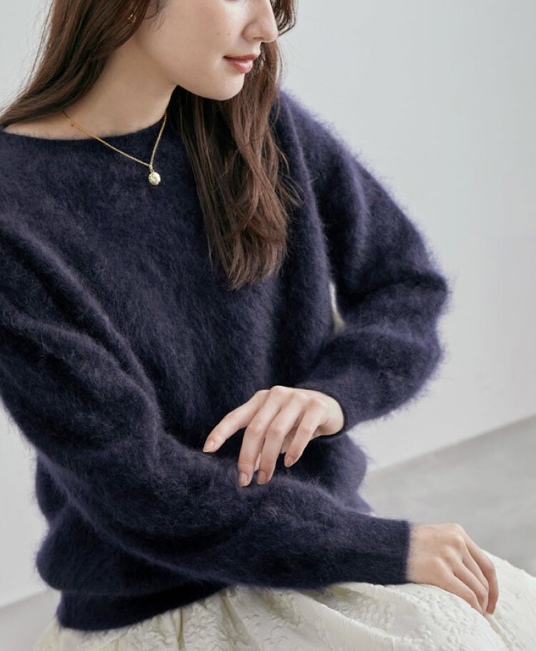寒さが本格化してきて、コートのインナーにプルオーバーとして着用でき、季節の変わり目には羽織としても着用できる使い勝手が良いところと、さりげない繊細なラメを混ぜているので華やかさもプラスしてくれるところも良いなと思い選ばせていただきました。