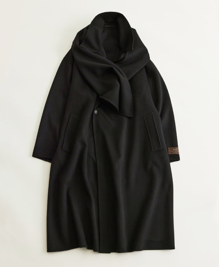 メリノウール ダブルフェイス セミダブル オーバー コート / マフラー付き / 超軽量 / ユニセックス