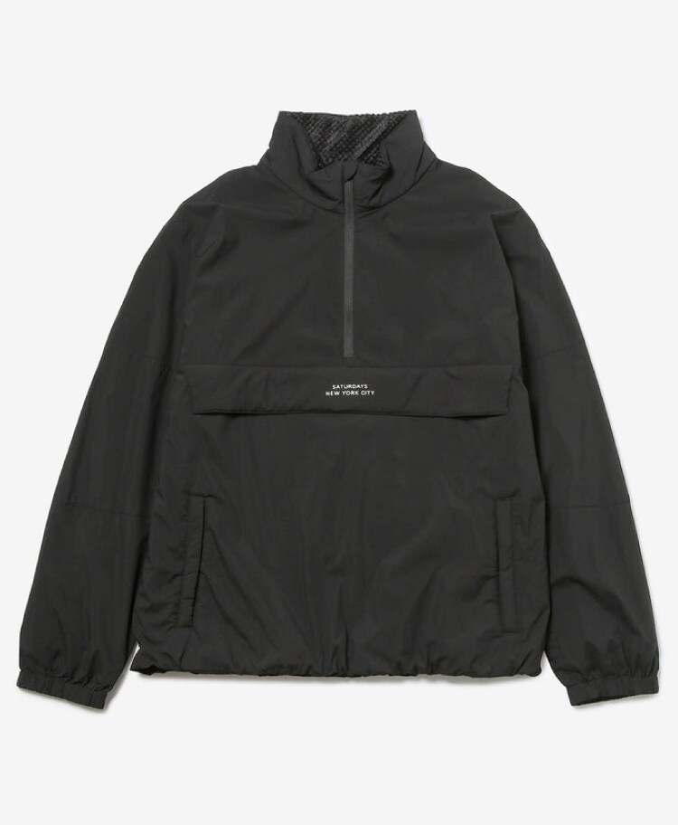そして選んだプルオーバー!Saturdaysのゴルフラインのアイテムで、私自身ゴルフをやらないので、入荷当初から気になっていた訳ではありませんでした。しかし、商品を深堀りするにつれ、裏地に使用されている素材が、 Octa®️ という素材で、吸水速乾、断熱性に優れている事は勿論、ポリエステル素材の2分の1程度軽量感で、ストレッチが効いており、全ての面で痒い所に手がとどいている。正真正銘の高機能アウターと言って良いアイテムに出会ったので、このアイテムに決めました。この手のアイテムは、放熱が悪く、逆に熱がこもりがちで汗かいたりしますが、その問題点もクリアしてました。ゴルフはしませんが、自分へのご褒美でリラックスウェアとして、普段着で着まくります。