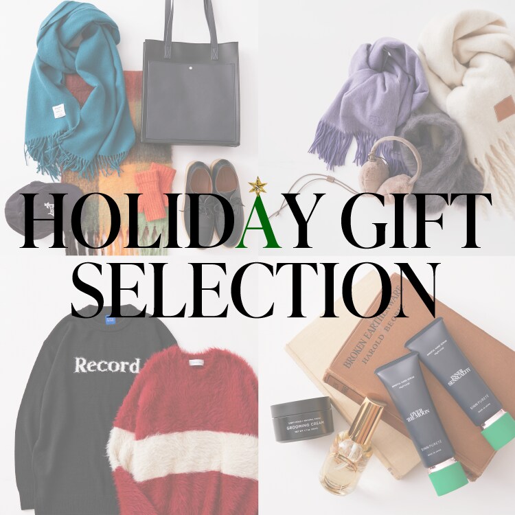 彼へ春先まで着られそうなシックなダウンベストを選びました。袖ありのダウンは数枚持っているけれど、ダウンベストは持っていないはず。「Eddie Bauer」にBIOTOPがチャコールグレーで別注したこちらのダウンは、キルティングがスクエア型になっていて、着るとモダンな印象にしてくれます。彼は普段古着を着ていることが多いので、いつものワードローブに馴染みつつも、新鮮な気分になってくれそうなものをセレクトしてみました。今年から仕事で新たな挑戦を始め日々奮闘している彼に、応援の気持ちも込めてちょっぴり奮発したクリスマスプレゼントに。