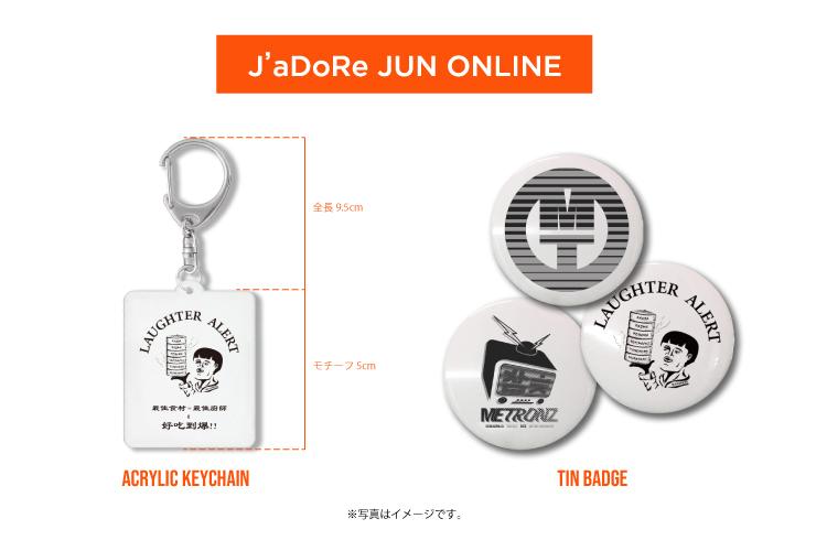 J'aDoRe JUN ONLINEでコラボ商品をお買い上げのお客様に、オリジナルアクリルキーホルダーまたは缶バッチのどちらかをプレゼント!