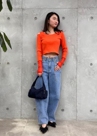 オレンジが運を活性化。背中のラインがきれいに出るトップスも開運につながるはず。