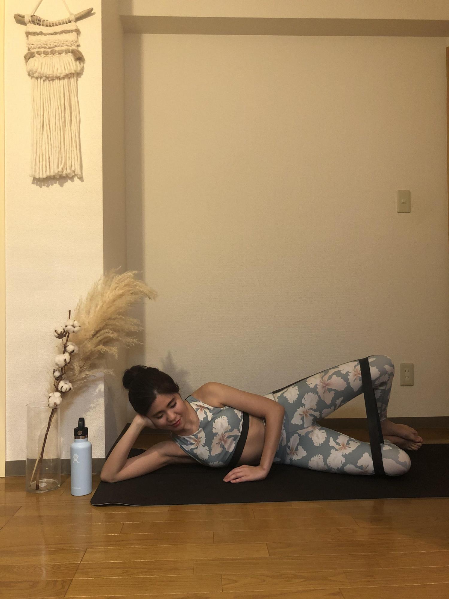 面倒くさがりだけど綺麗になりたい、わがまま女子にオススメです!わたしはこれをよくやります。笑 マーメイドポーズになったら、バンドを膝上につけて上下に動かしていきましょう!かなり効きますよ〜!