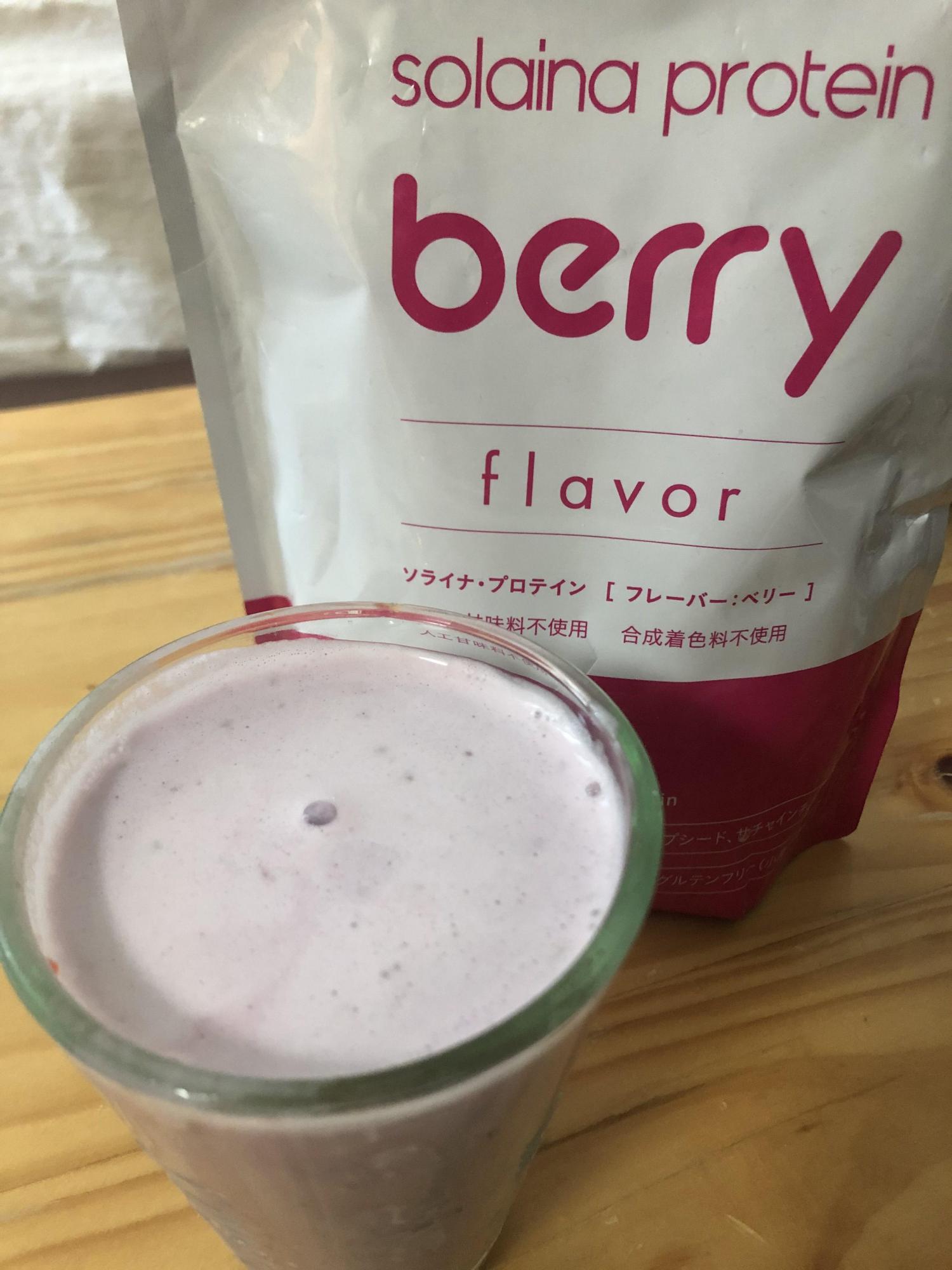 お気に入りのプロテインはベリーフレーバーのもの。