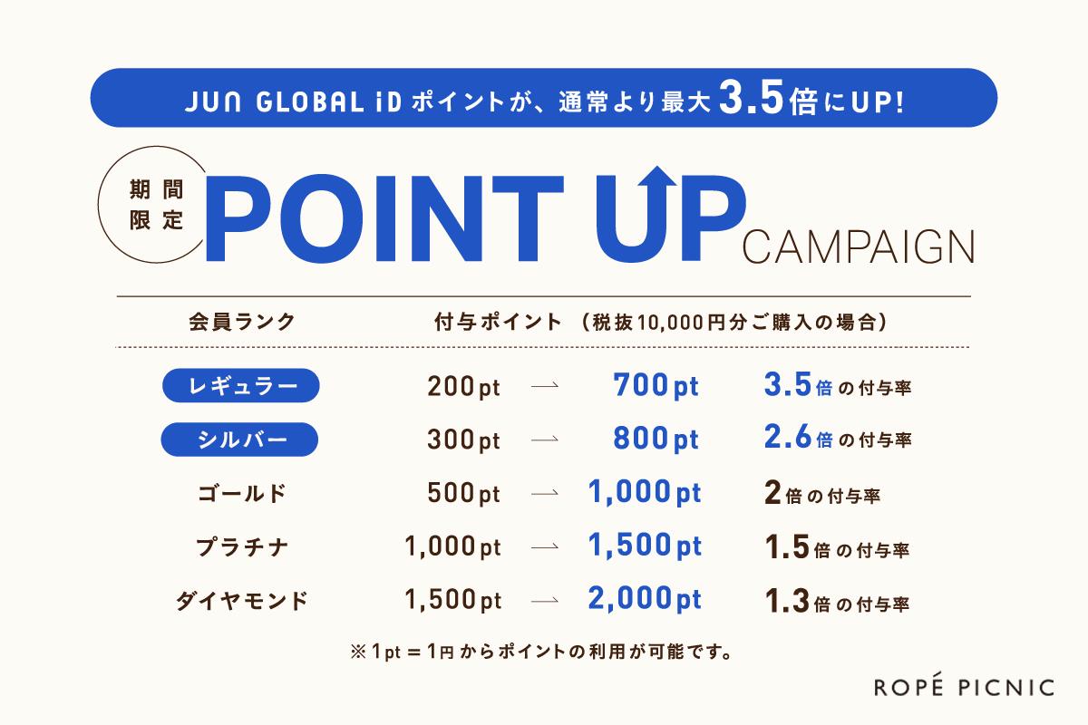 JUN GLOBAL IDポイントをプラス5%プレゼント !