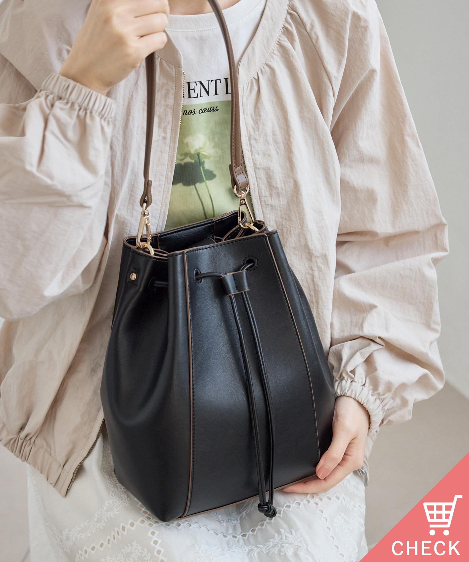 トレンドの巾着フォルムが可愛らしく、サイズも小さすぎず程よいミドルサイズ。