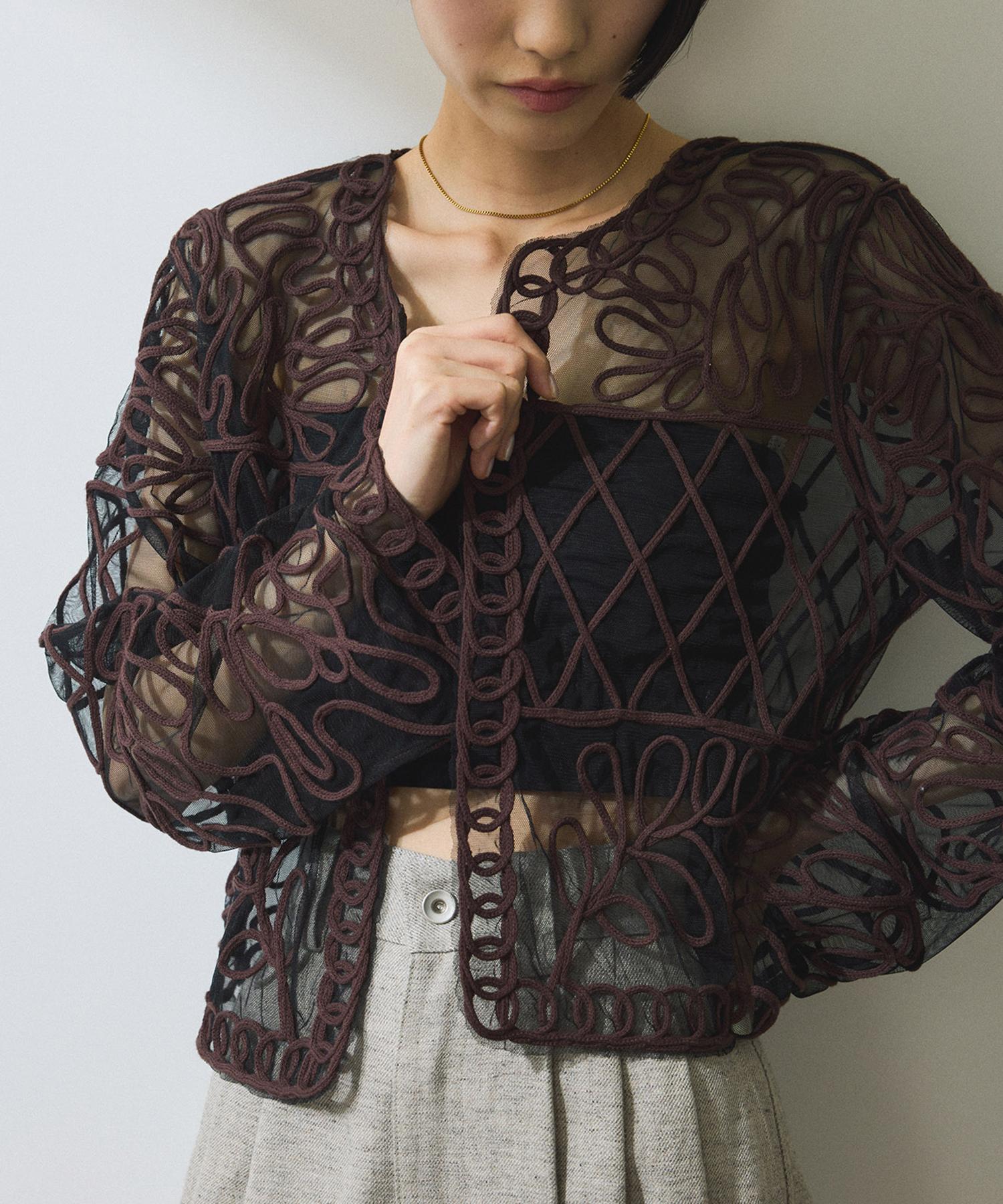 目面がきれいで張り感のあるリサイクルポリエステル混のシアーニット。 程よく透ける絶妙な素材感が取り入れやすい1枚。 シワになりにくい素材のため、冷房対策用としてバッグにインして持ち運ぶのも◎