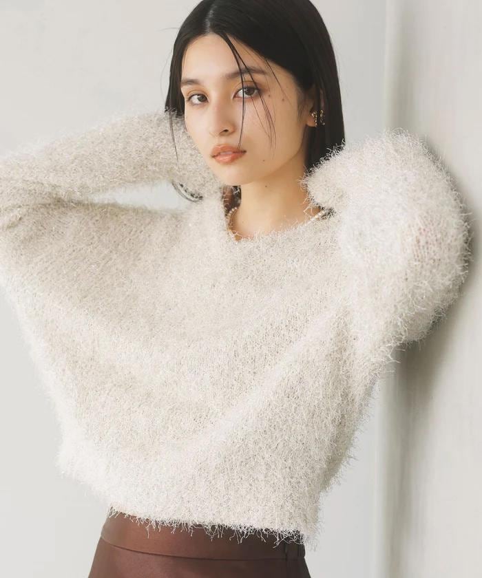 抜け感のあるVネックが印象的な大人の洗練されたニットプルオーバー。フォルム袖がフェニミンな印象もありつつ甘さを抑えたミニマムなデザイン。