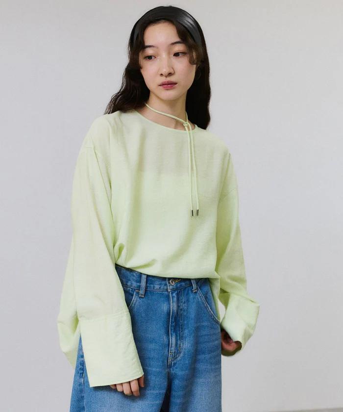 チュニック丈とゆったりシルエットが軽やかでラフな印象に。華奢な紐でアレンジも楽しめる、使い勝手抜群の2WAYブラウスです。