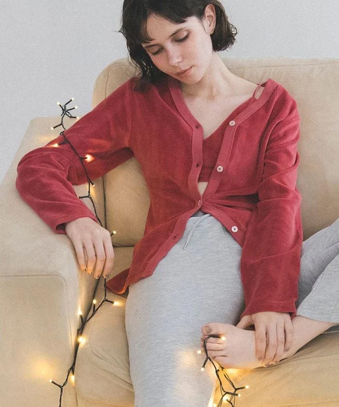 柔らかく肌あたりのベロア素材ですっきりとしたラインが綺麗なデザイン。ゆったり過ごしたい日にぴったりの着心地のいいアイテム。