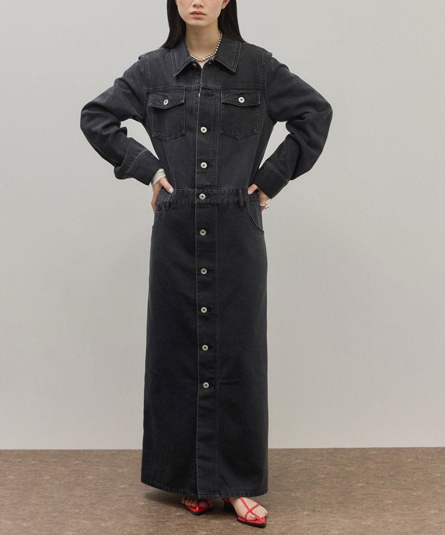 1枚で決まるモードなフォルムが大人の魅力を引き出す。デニムの抜け感と深めのスリットが女っぽい、今春に取り入れたくなる旬なデニムワンピース