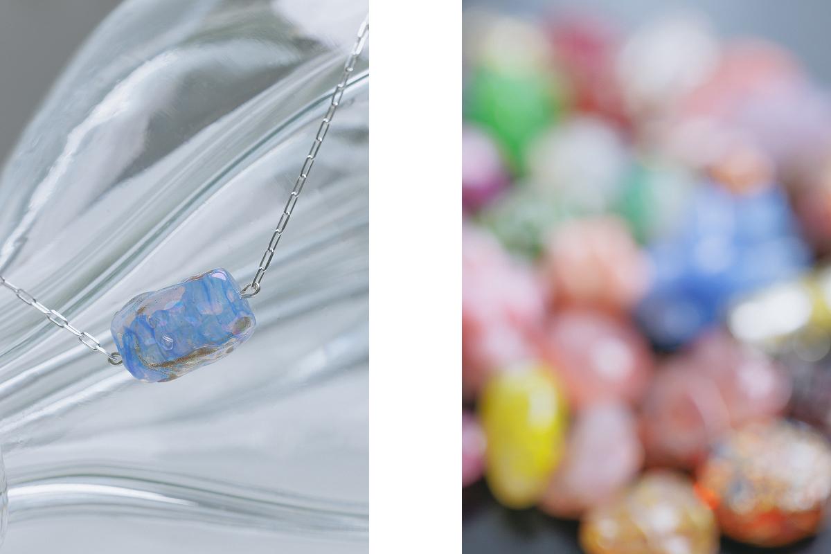 イベントでは、色とりどりのヴィンテージネックレストップからお好みの一点をお選びいただき、2種類の長さのシルバーチェーンと組み合わせてオーダーいただける特別な機会をご用意しました。