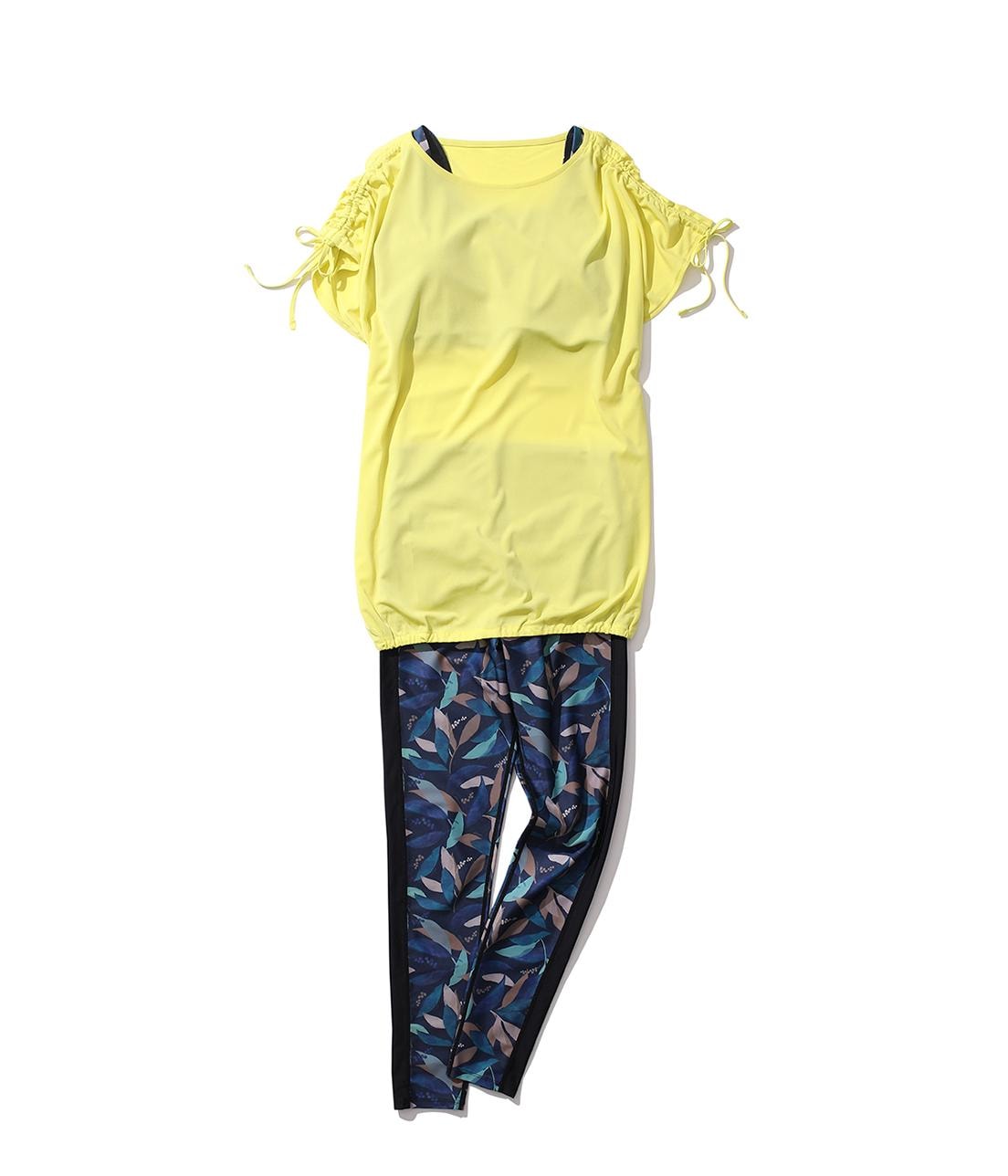モチベーションをあげてくれる鮮やかなレモンイエローを主役にした、華やかフィットネスコーデ。
