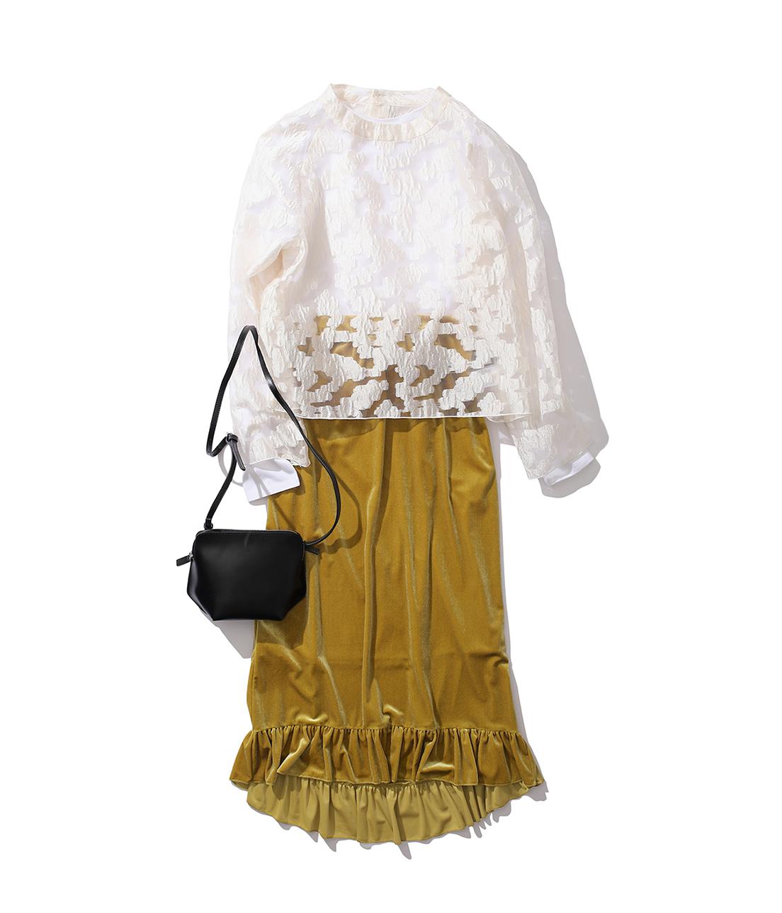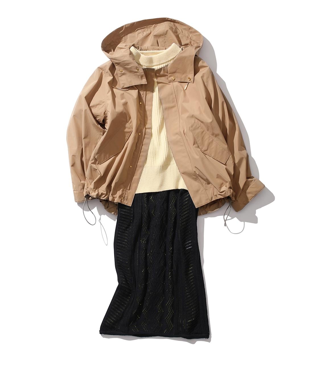 トレンドのシアーなトップスの冬の着こなしに、使い回し力抜群のアイテム。