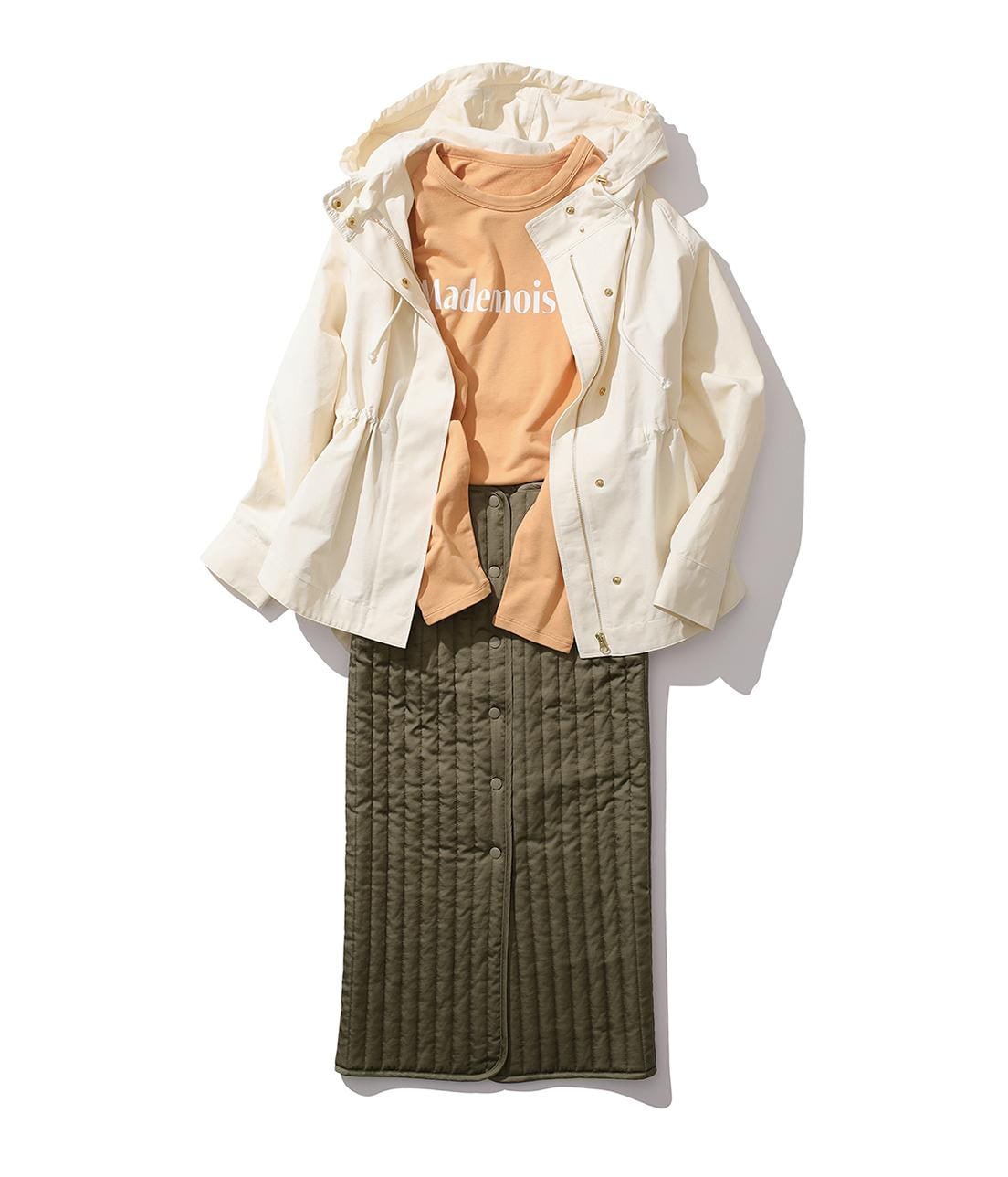 カジュアルなアイテムを女性らしいシルエットで着こなして。